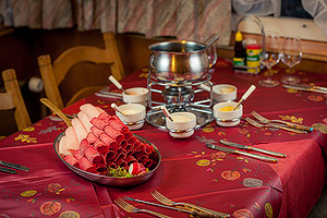 Zu unseren Fleischfondues à discrétion (bis max. 400 gr. pro Person) servieren wir Ihnen 5-6 verschiedene Saucen nach Art des Hauses und als Vorspeise einen kleinen gemischten Saisonsalat.
